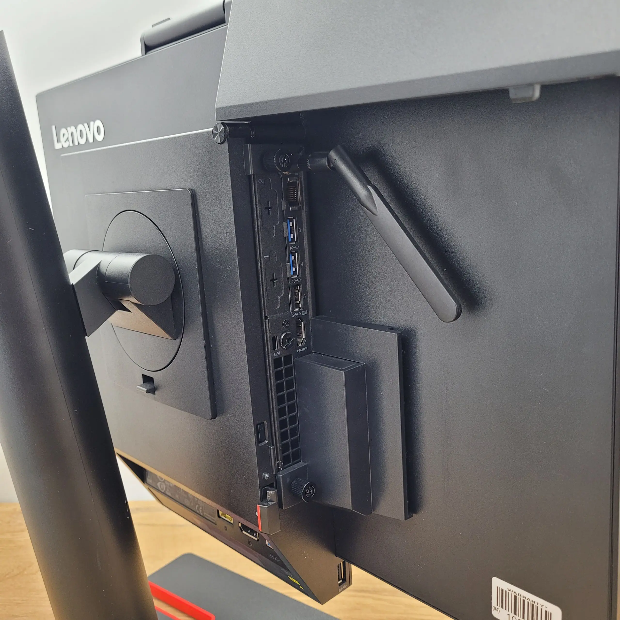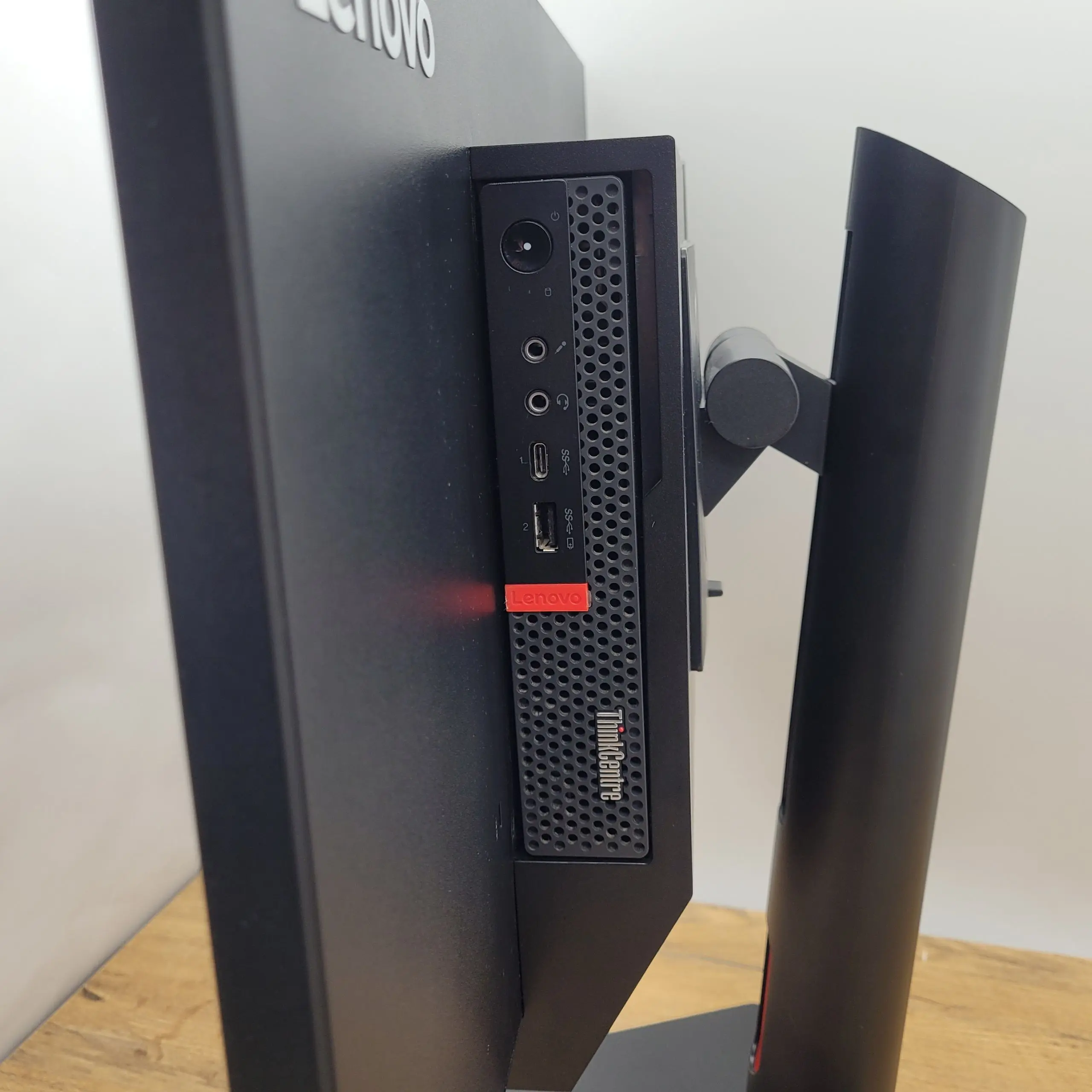- W skład zestawu wchodzi: monitor TIO24GEN3 z uchwytem na komputer, ThinkCentre M920X oraz zasilacz.